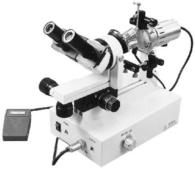 Reflecting Narishige's long practical experience, the MF-900 offers a wide range of functions for making many different kinds of microtools by processing microneedle tips. An easyto-use manipulator is provided for operating the heater and pipette, and the microscope is operated three-dimensionally with control close to the operator's hand. Separate rotation mechanisms for vertical and horizontal movement allow the pipette to be approached at any angle, while a special device in the heater section can form it into any required shape. As well as conventional scales, a protractor to measure angles is provided on the microscope eyepiece. With the heater turned ON/OFF via a foot switch, and the heater section integrated into the microscope body, all control actions are performed easily and precisely close to the operator's hand.