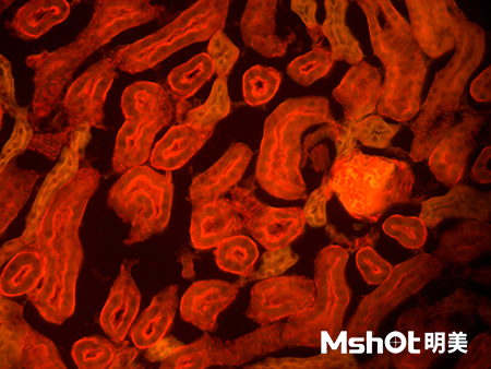 下圖為客戶技術員使用明美研究級倒置熒光顯微鏡MF53搭配研究級顯微鏡數字相機MSX2進行熒光切片樣品的觀測: